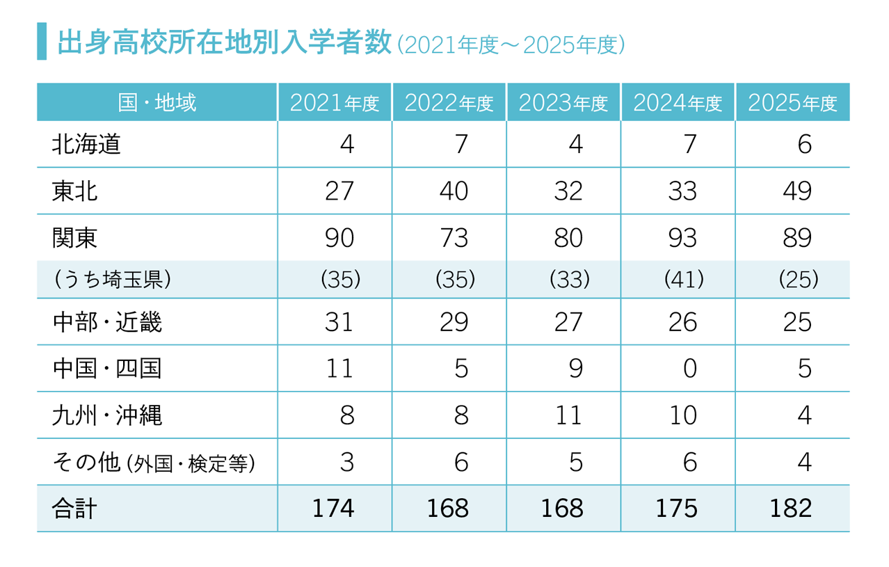 埼玉大学教養学部では、1年次からの入学を希望される方のために、「一般選抜」、「特別選抜(学校推薦型選抜、帰国生徒選抜、私費外国人留学生選抜)」を実施しています。