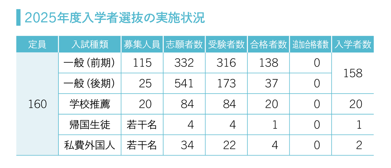 調査書の内容、大学入学共通テストと個別学力検査の成績によって選抜を行います。個別学力検査では、外国語(英語)の試験を課します。(募集人員:135名(令和8年度入試より募集人員を115名→135名に増員))