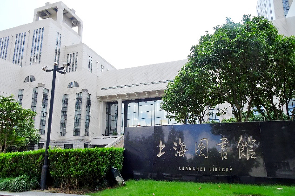 上海図書館。一般書から専門書に至るまで幅広い分野の著作をそろえており、多くの人々に利用されてきた。古代から近現代に至るまでの中国史関連資料も豊富に所蔵・公開されている。